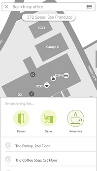 Offices have tons of different things in them. At times, it can be a pain for employees to search for things such as a specific meeting room, a specific desk, where the nearest restrooms are, or where the kitchen is located. I worked on a design that would focus the user flow in order to aid users in their search for what they're looking for in their office.